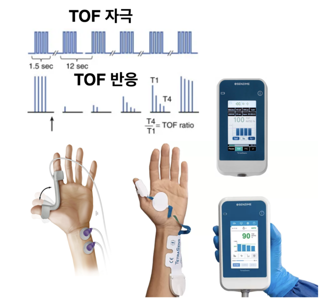 신경근전도(NMT) ◼︎ 신경근차단제 효과, 수술 후 잔류 효과 파악전신마취 중 신경근차단제 효과가 충분한지 확인하고, 수술 후에는 잔류 효과를 평가합니다. |